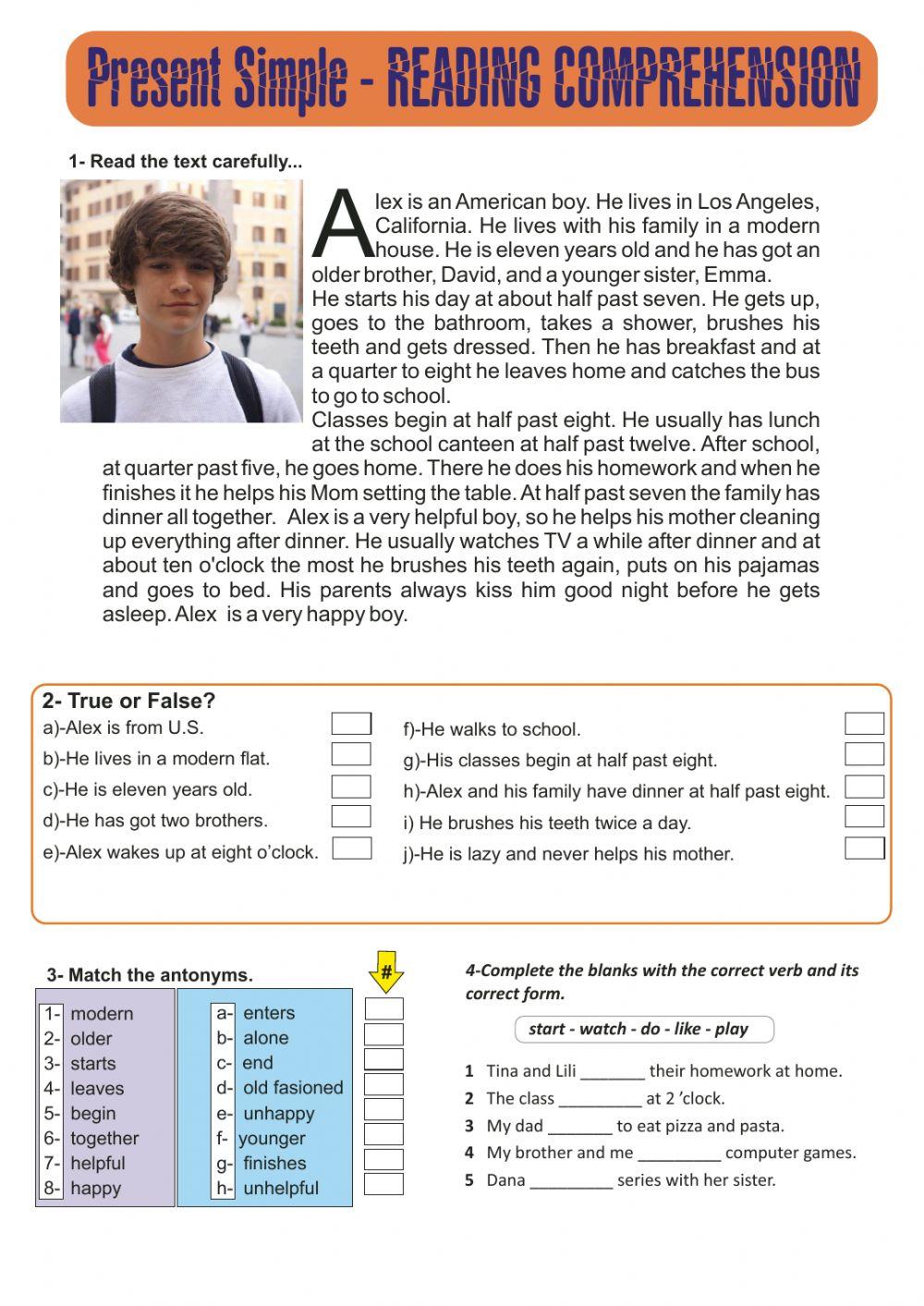 Present simple reading and activities